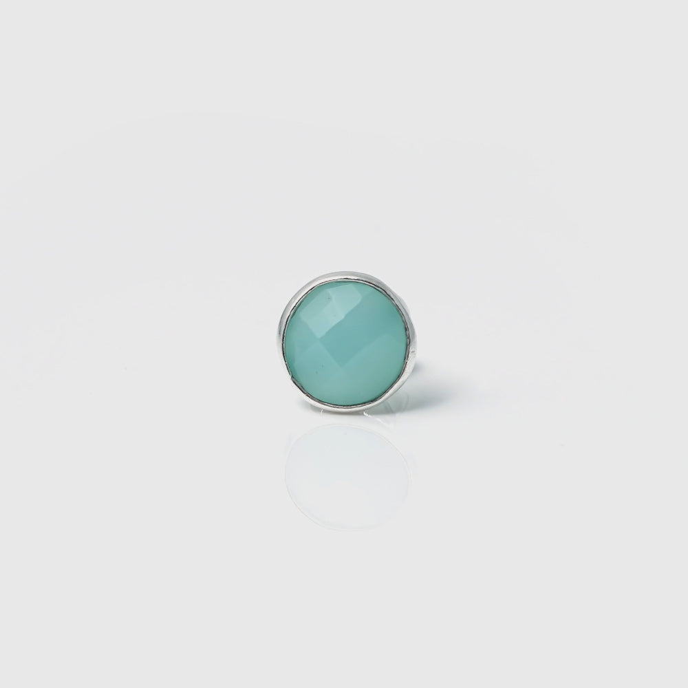 - Stone: Smooth-cut pastel aqua blue Chalcedonia stone(glass/milky gemstone look)