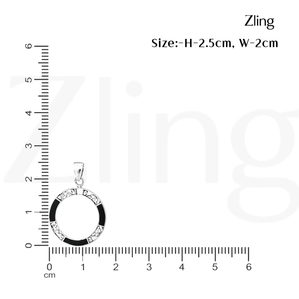 Sterling Silver Filigree Circle Pendant with Black Enamel Inlay